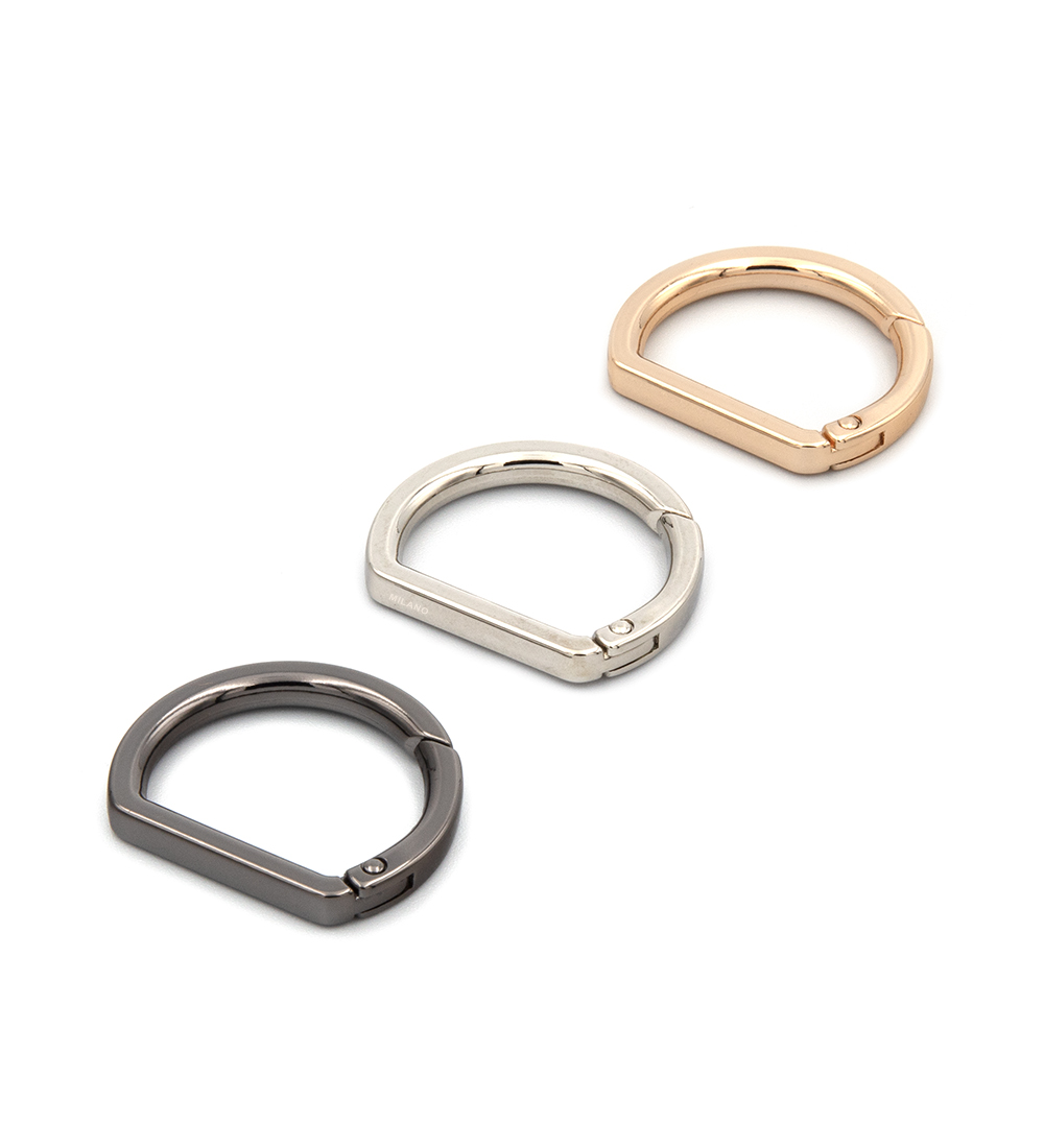 El Mosquetón Plano 1″ está disponible en tres acabados distintos que se adaptan a diversos estilos y necesidades estéticas: