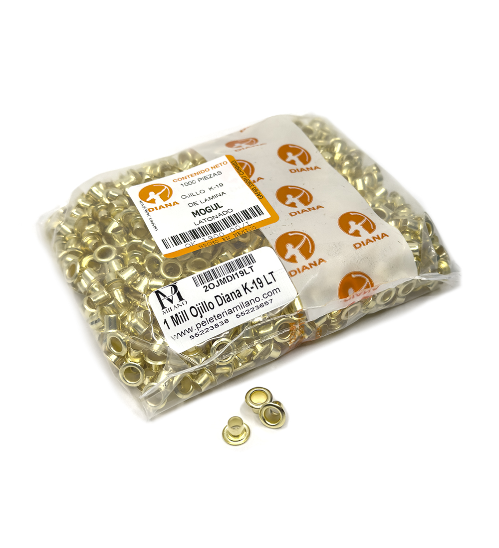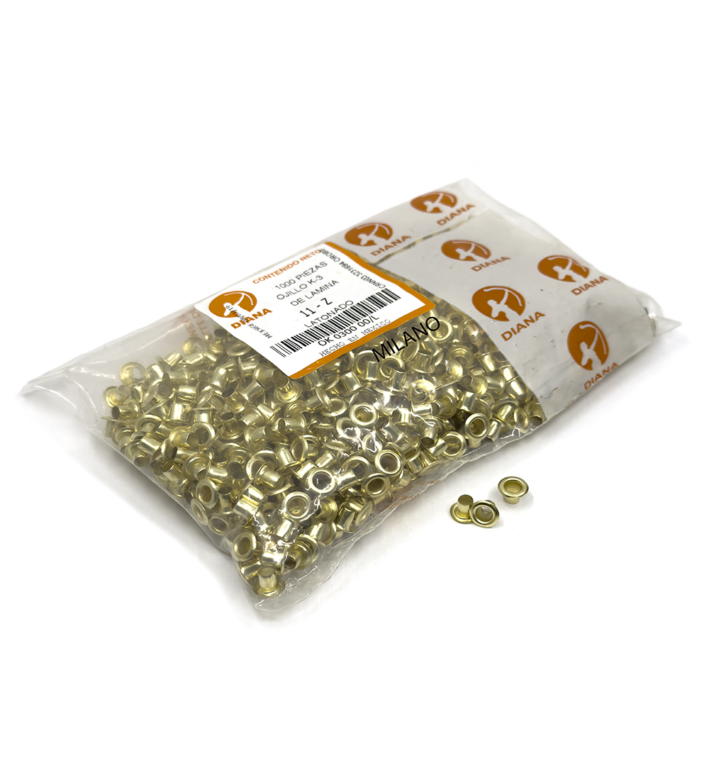 Los Ojillo Diana para ropa y calzado, fabricados en lámina de alta calidad, son ideales para una amplia variedad de aplicaciones en ropa, calzado y bolsas. Este lote de 1000 piezas es la opción perfecta para quienes buscan un accesorio duradero y fiable que pueda soportar el uso diario sin perder su calidad ni su apariencia. Disponibles en diversos tamaños y acabados, estos ojillos se ajustan a diferentes necesidades y estilos, ofreciendo tanto funcionalidad como estética en cada uno de tus proyectos.