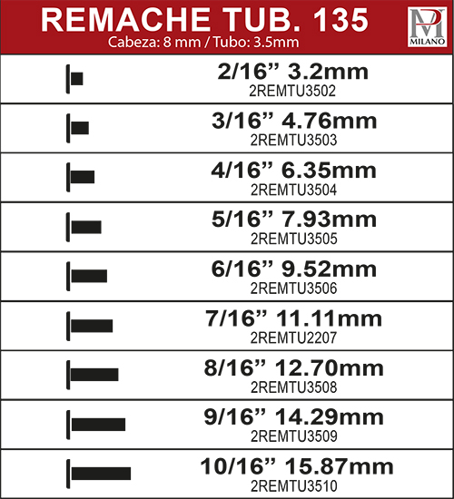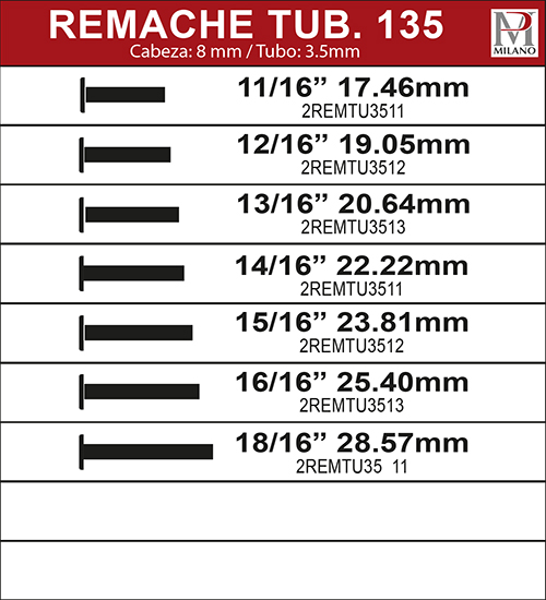Remache Semi-Tubular 135 (1,000 piezas)