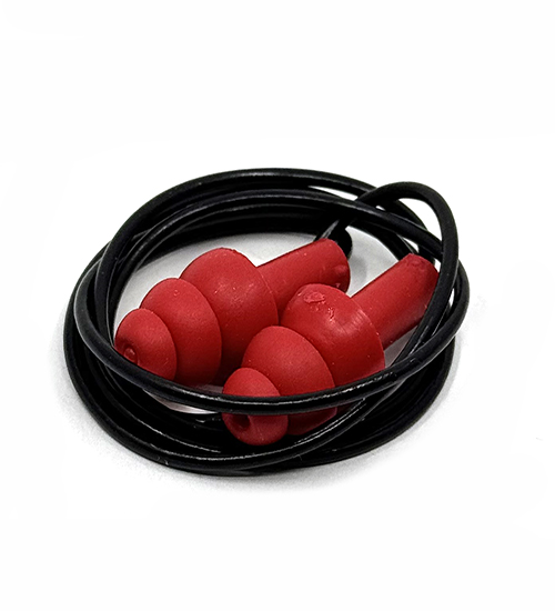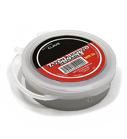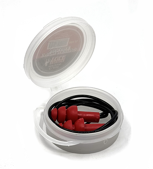 Tapones auditivos reutilizables con cordón para colgar del cuello, incluye estuche de plástico. Reduce hasta 26 decibeles.